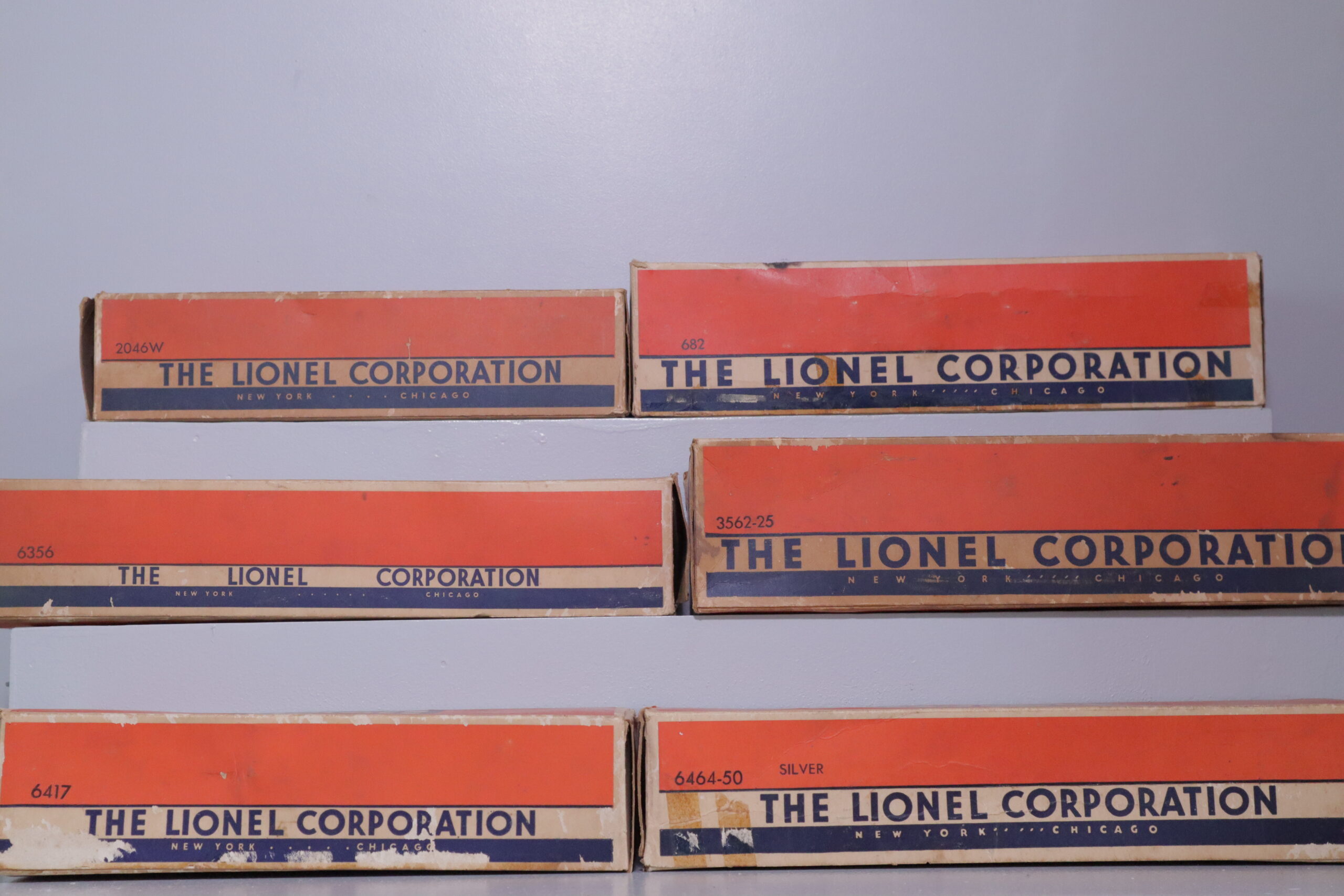 A lovely post-war Lionel 682 Loco Set #2217WS for sale. 0 gauge. The overall condition is good to very good. The Loco has some small paint chips, but all lettering is good. The tender is in very good condition, and all lettering is perfect. The rolling stock is in very good condition, with all lettering intact (there is some fade on the 3562-25 Barrel Car however). The Barrel Car has all 4 barrels and operating man. The 6464-175 Box Car has quite a few scratches on the body. The 6356 Stock car has one door that is a slightly brighter yellow. The rolling stock boxes are in good condition, with all side flaps intact (except the Loco, which is missing side flaps on one side). They don’t have internal boxes.