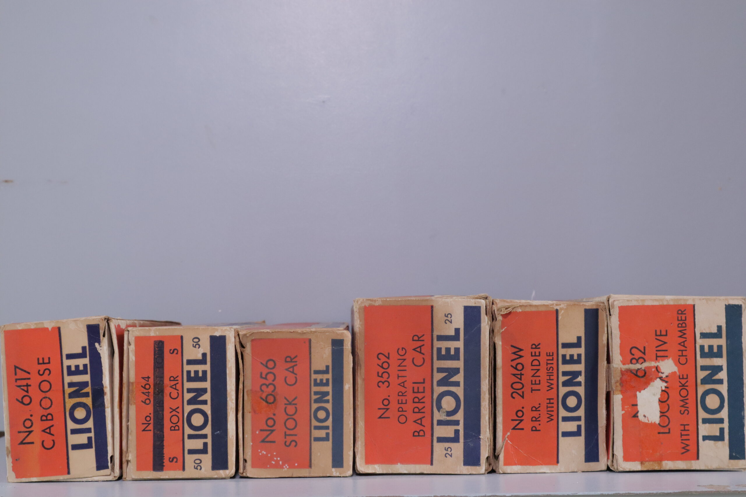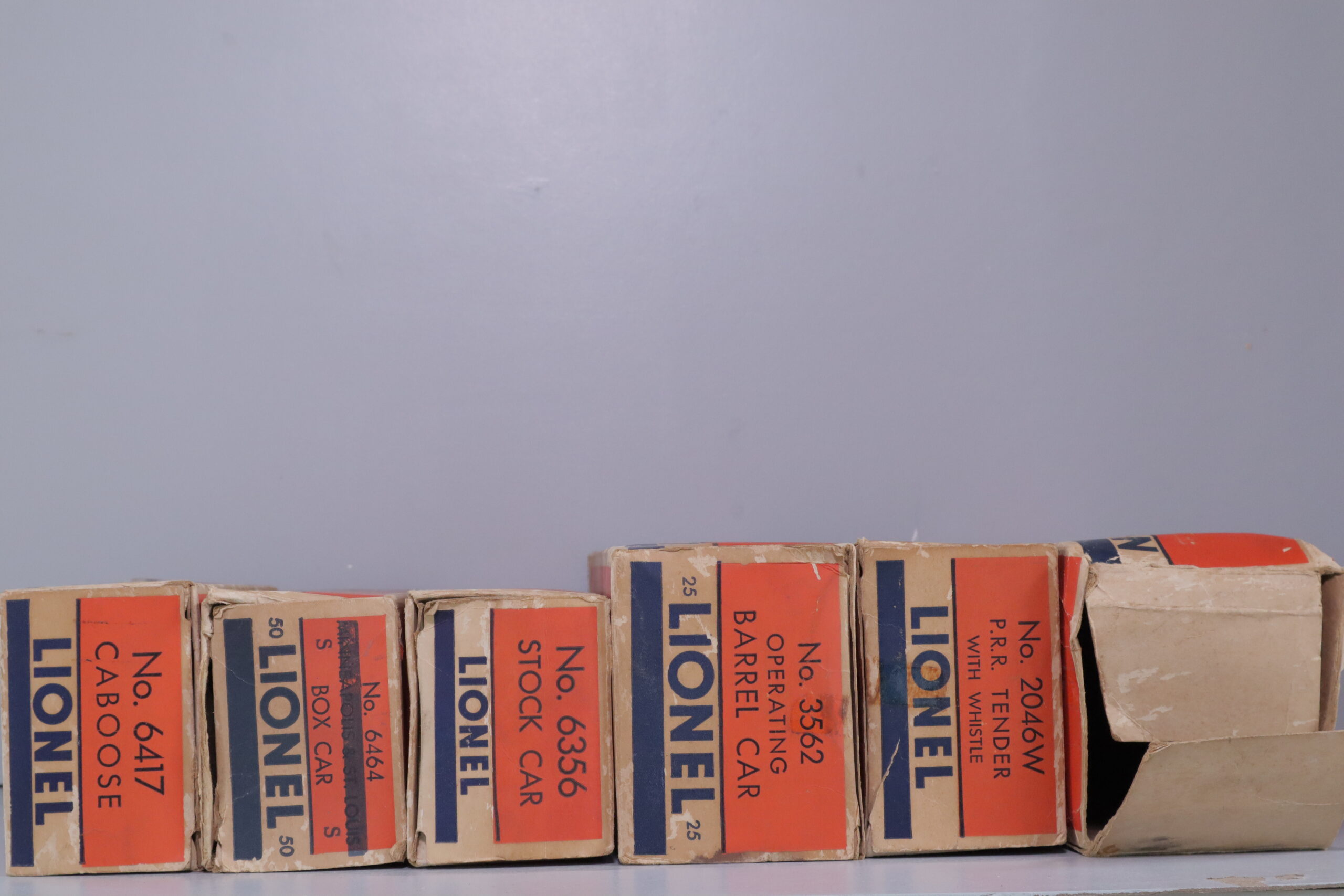 - Rolling Stock: 3562-25 Barrel Car, 6464-175 Box Car, 6356 Stock Car, 6417 Caboose