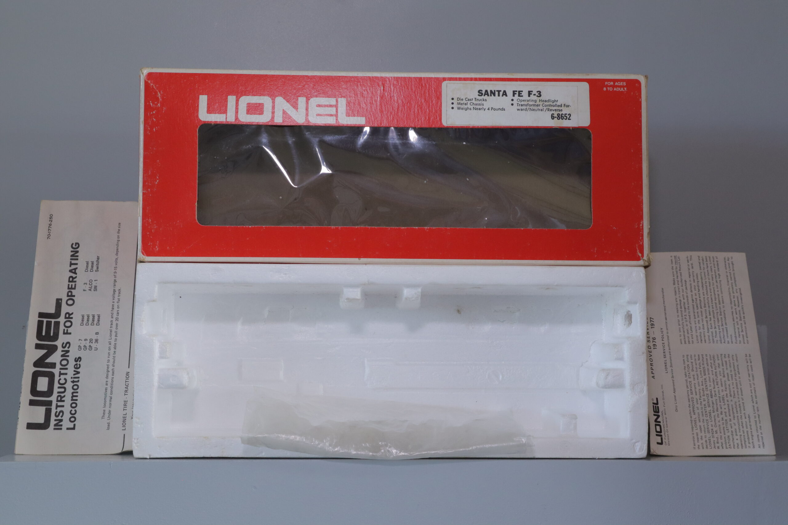 A excellent pair of boxed modern-era Lionel 8652 and 8653 Santa Fe Diesels for sale. The overall condition is excellent. Boxes are intact (one small internal side flap is missing on the 8652P box, and the 8653D box side flap has a small tear), with all original pamphlets (x2 in each box), plus plastic packaging.